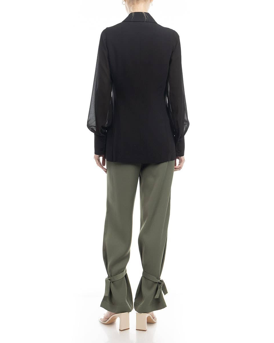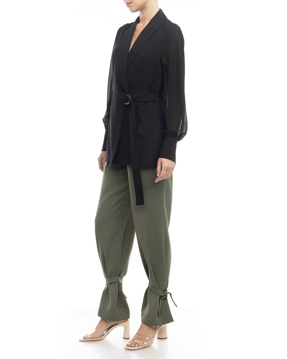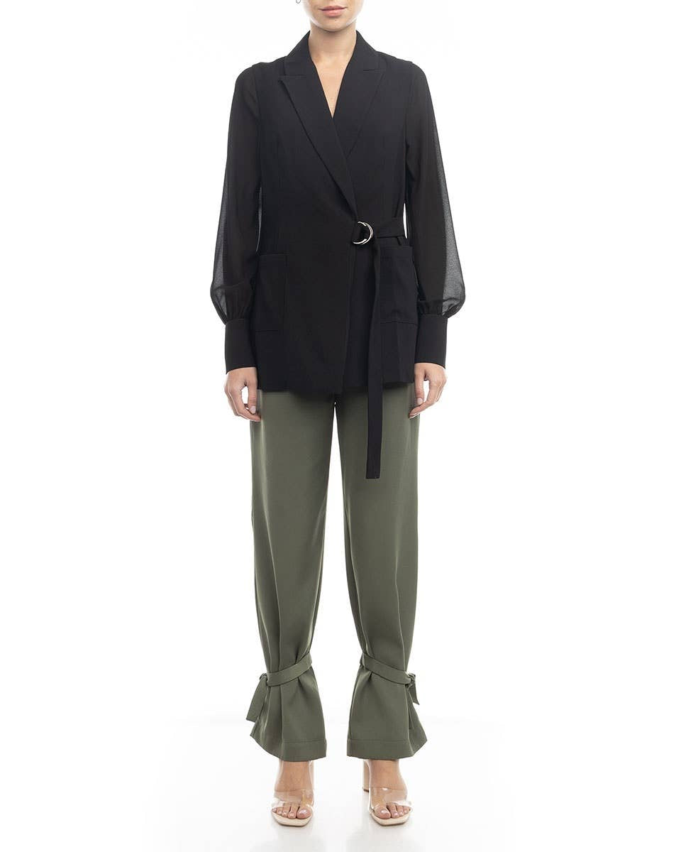 Elevate your wardrobe with the Angie Blazer, where playful meets polished. This chic piece features elegant chiffon sheer sleeves that add a whisper of allure while keeping things light and breezy. The unique looped belted closure brings a fresh twist, cinching your waist for a flattering silhouette that’s as fun as it is fashionable. Perfect for turning heads at brunch or adding flair to your office ensemble, the Angie Blazer is your new go-to for effortless style with a modern edge.