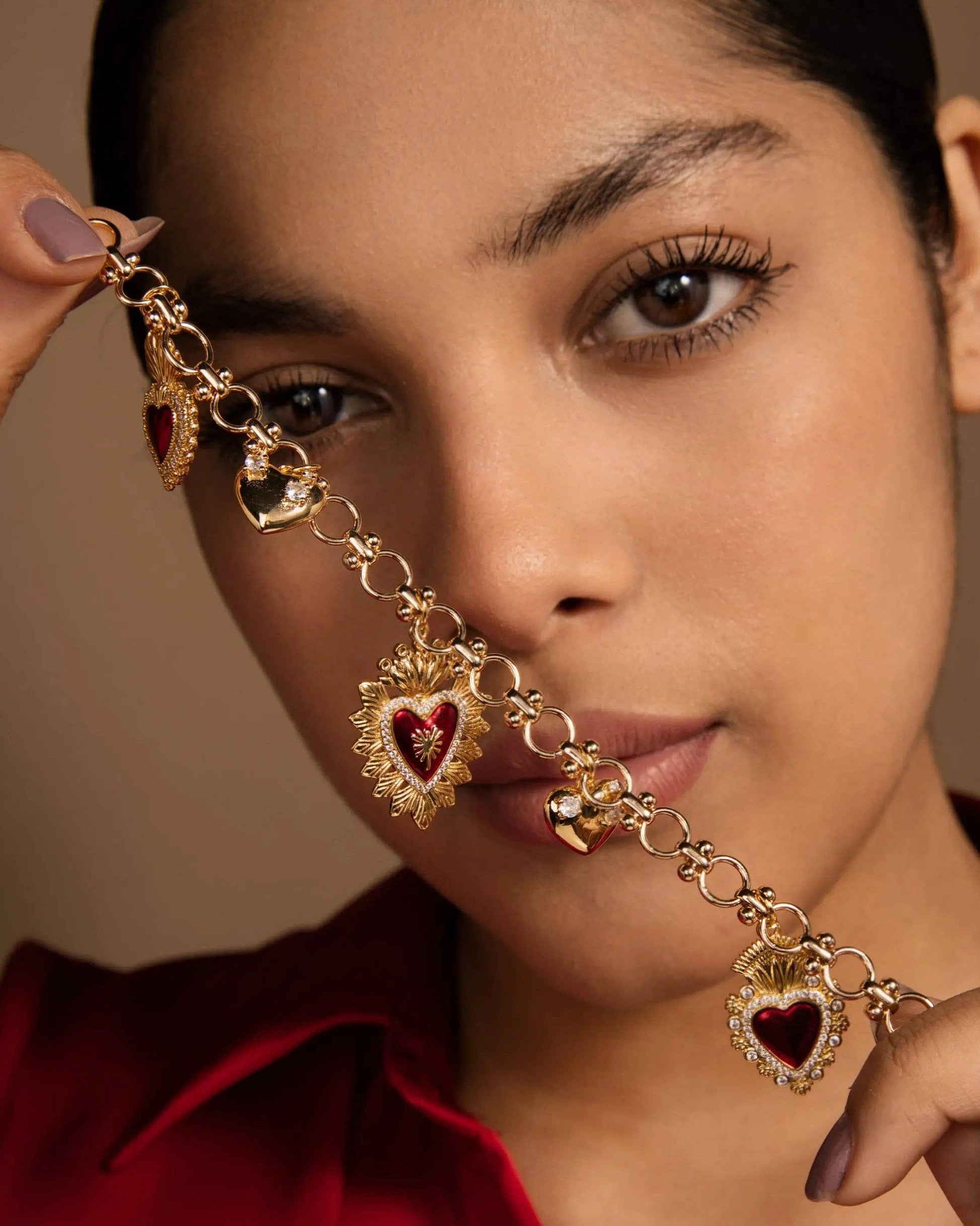 Charm your heart away with this playful red heart pendant necklace! Featuring adorable heart charms in a lively red shade, this necklace is all about celebrating love and passion with a fun twist. Whether gifting someone special or adding a bright spark to your own collection, its charming design and quality craftsmanship make it a joyful treasure you'll adore for years. Heart charms have long captured deep feelings, and this necklace does so with a cheerful pop of color and spirit.