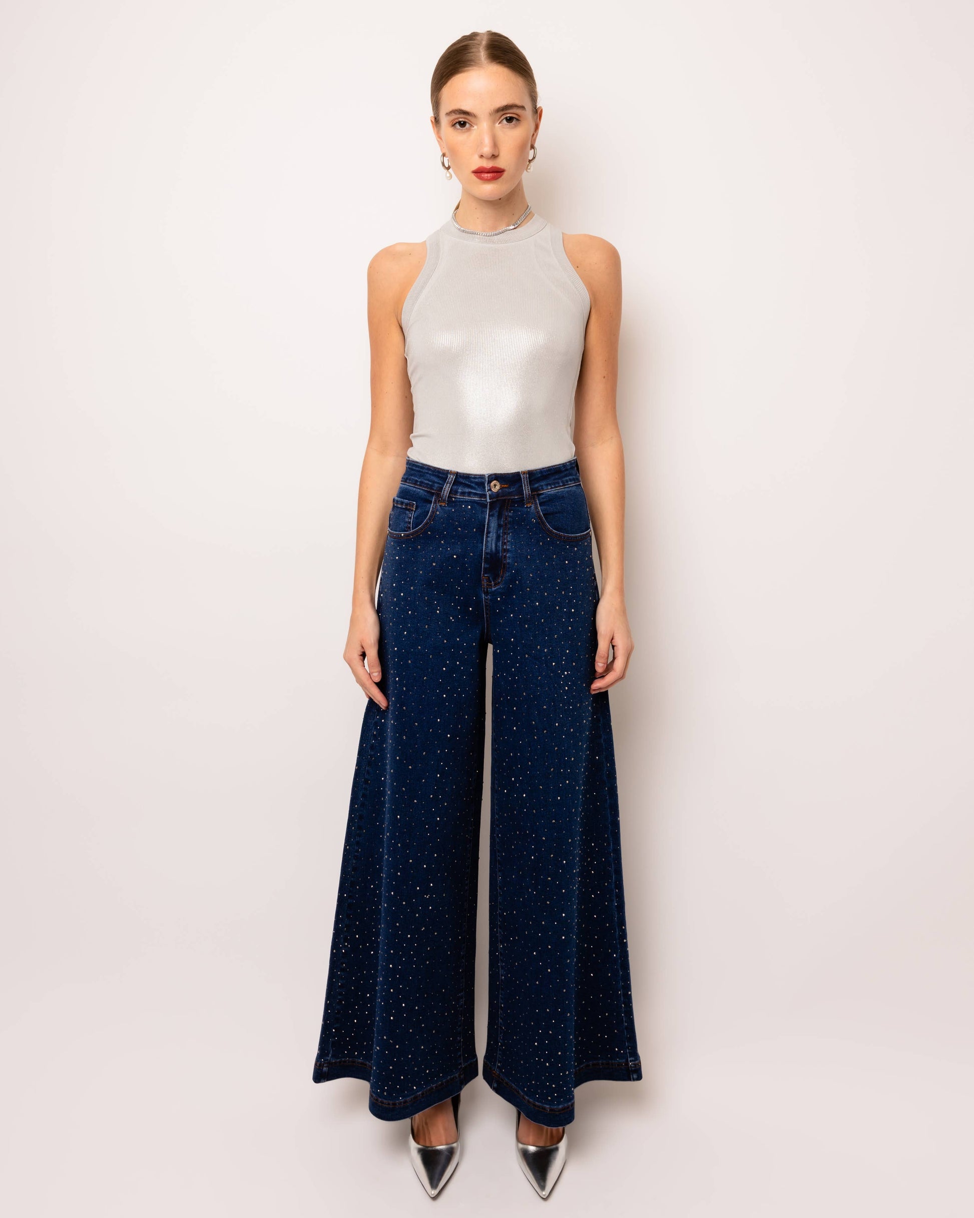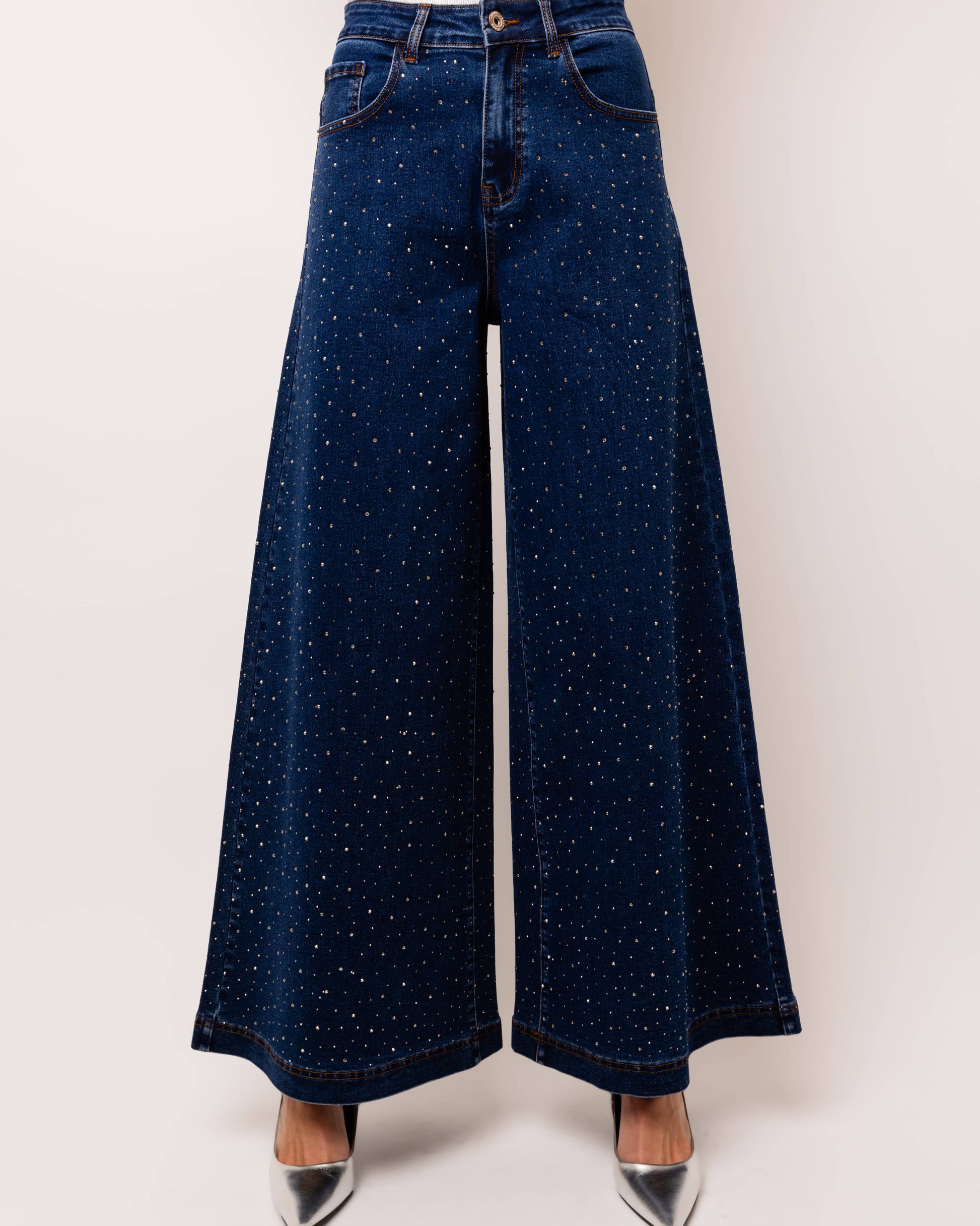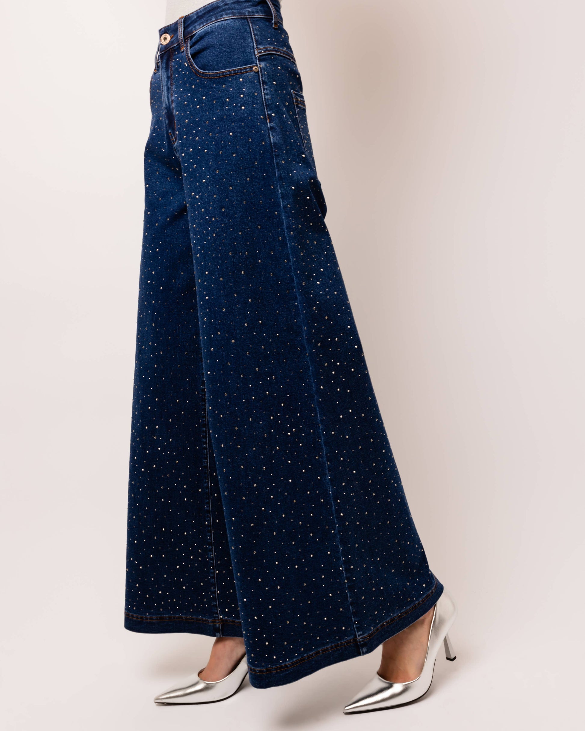 These mid-rise Demi Flare Jeans bring sparkle and style to your wardrobe with dazzling crystal embellishments that shimmer with every step you take. Crafted from soft stretch denim, they offer a comfortable fit that moves gracefully with you. The dramatic, extreme flare gives a retro twist, perfect for making a bold statement wherever you go. Whether dressing up for a night out or adding some glam to your casual look, these luxe jeans blend comfort and eye-catching detail effortlessly, turning heads and brightening your day.