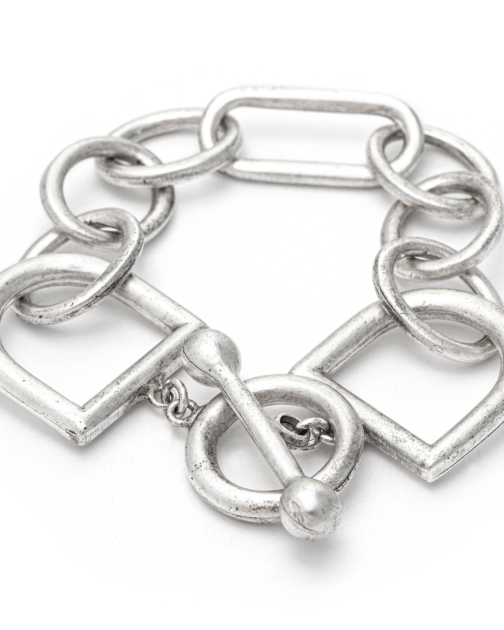 The Eliza Bracelet is a standout piece featuring bold, interlocked links and a large toggle clasp that adds a touch of flair to any outfit. Crafted by skilled artisans in New York, this playful accessory combines timeless charm with a modern edge, perfect for adding a little sparkle to your everyday look or dressing up for a night out. Slip it on and let the Eliza bracelet be your new favorite statement piece!