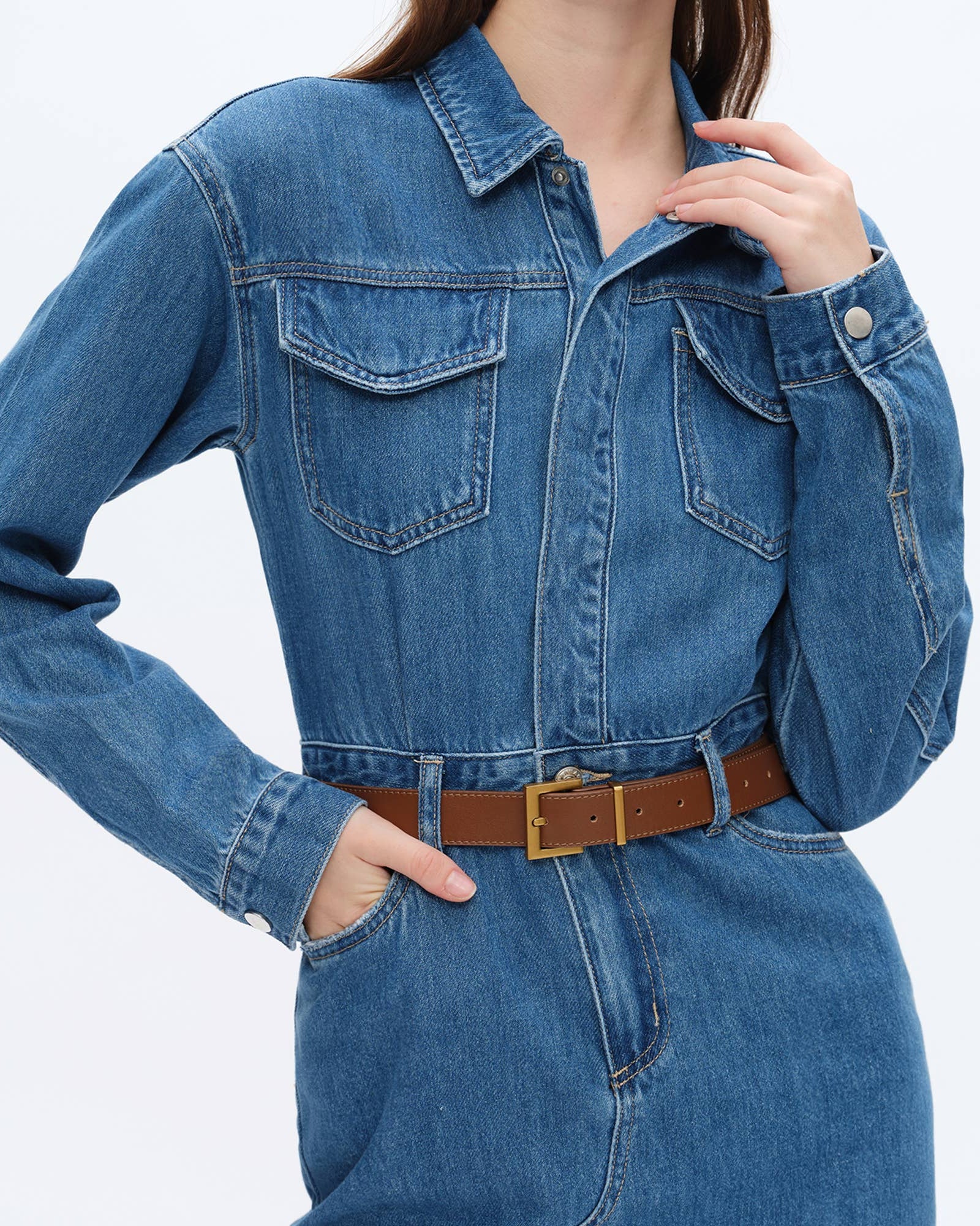 The Andy Dress combines classic denim toughness with a playful twist. Crafted from rigid, no-stretch denim, it features a perfectly frayed hem that adds a touch of cool edge. Its unique design includes both button-front closures and a zipper for a tailored fit that flatters every shape. Whether you choose to belt it for a cinched silhouette or leave it loose for easygoing vibes, this dress adapts effortlessly to any season. From sunny days to crisp evenings, the Andy Dress is your go-to for versatile, stylish comfort with a fun attitude.