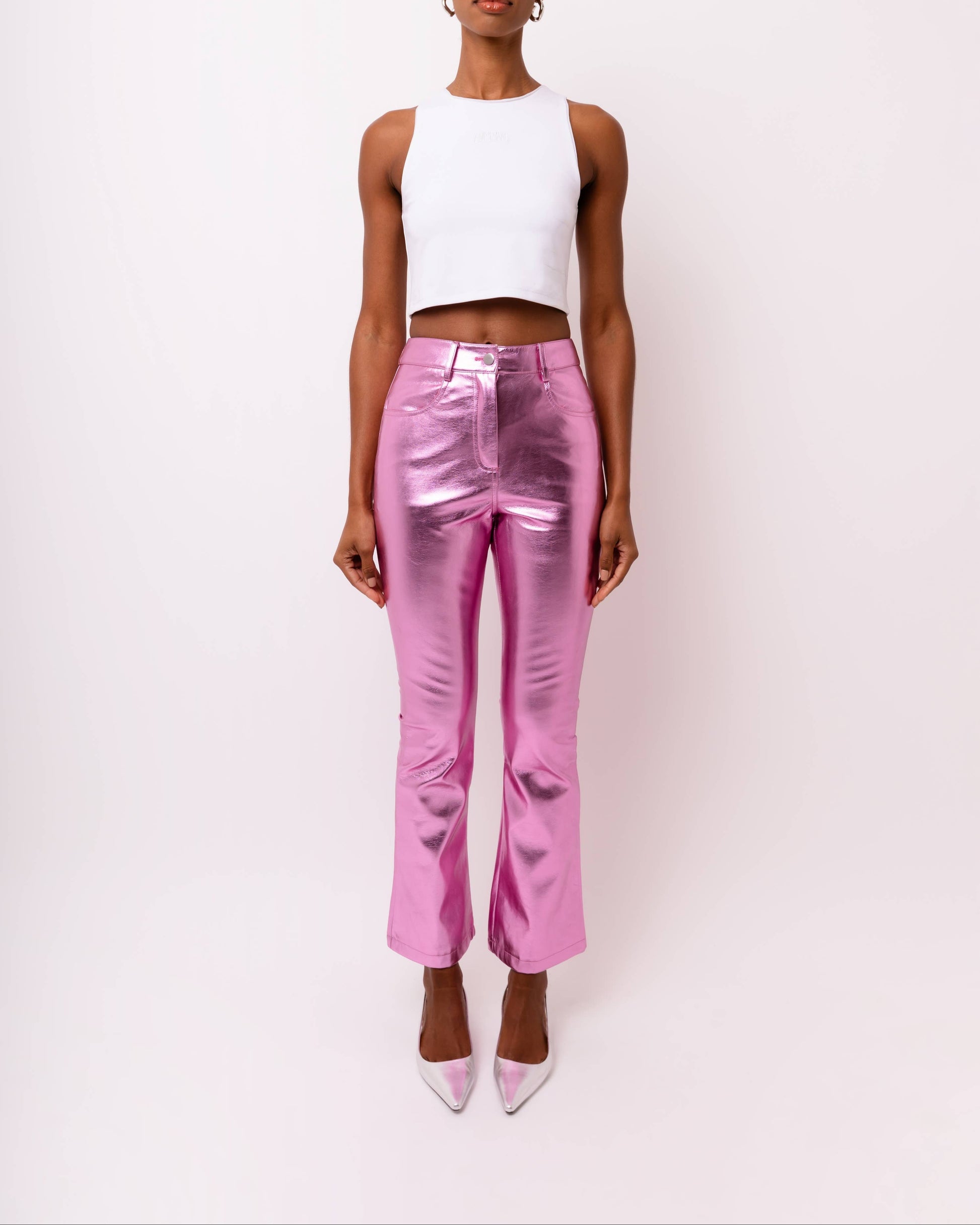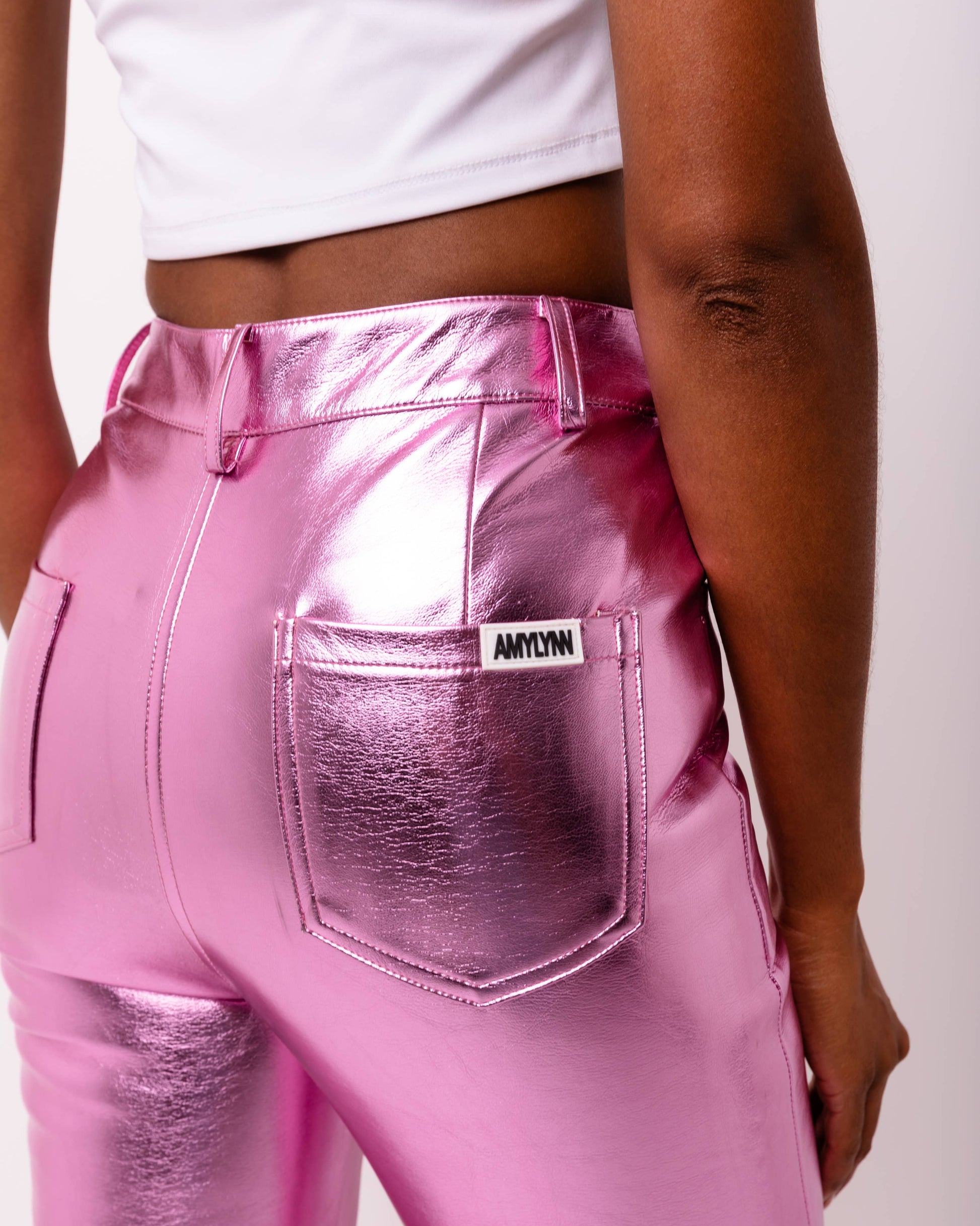 Elevate your style with the Barbie Pleather Pant—a bold and sleek piece that instantly upgrades any outfit. These slim-fitting, high-waisted pants feature a zip front and top button closure for a streamlined look that hugs your silhouette just right. Pair them with a casual tank or tee for an effortlessly cool vibe, or dress them up with a blazer or cozy cashmere sweater when you want to turn heads. Perfect for day-to-night wear, these pants will be your new go-to for stunning, confident outfits. Remember to keep them looking fresh with dry cleaning only. These are seriously amazing!