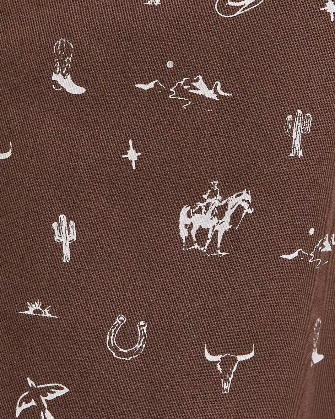 Step into the spotlight with the Lainey Cowboy Pant, a cheeky take on classic western style. Featuring a straight leg and just the right amount of minimal stretch, these pants offer a comfortable fit while keeping you effortlessly on trend. The playful western graphic adds a fun twist, making them the perfect companion for your fall wardrobe. Whether you're heading to a casual outing or want to channel that cool cowboy vibe, the Lainey Cowboy Pant brings style and spirit together with a wink and a nod to modern sass.