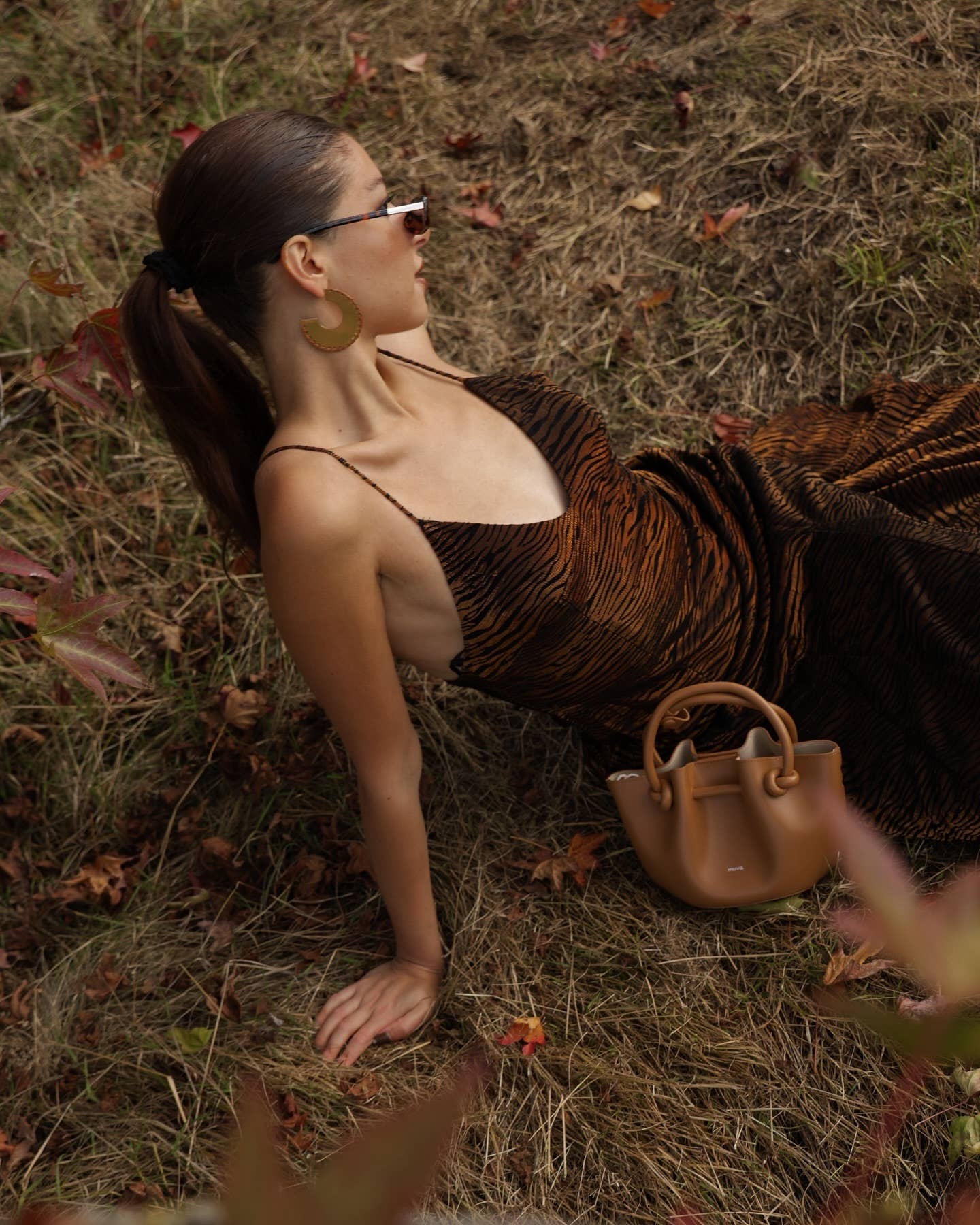 Elevate your style with the Talia Tiger Dress, a full-length maxi crafted from sumptuous luxe velvet that feels as good as it looks. This dress hugs your curves with a flattering silhouette, flowing effortlessly to the floor for a touch of drama. The open back and chic rear strap detail add just the right amount of allure, while a discreet rear zip ensures a perfect fit. Featuring a shimmering metallic tiger stripe pattern, the Talia Tiger Dress is designed to turn heads and make every entrance unforgettable. Get ready to unleash your wild side with this playful yet elegant statement piece. Really cool paired with the Lucy Fur!