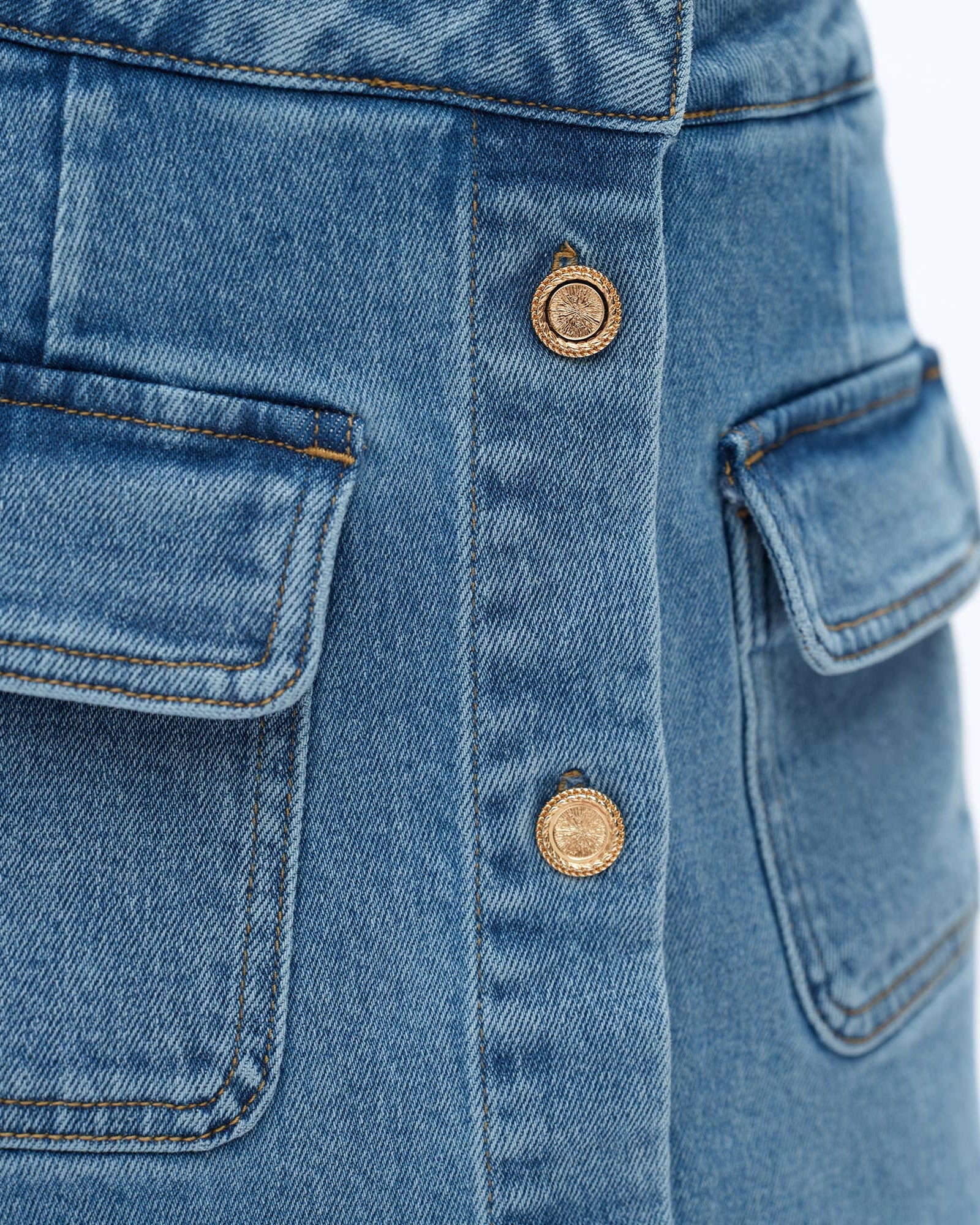 The Ella Skort brings a playful twist to classic denim with its medium blue comfort stretch fabric that moves with you all day. Featuring an ultra high-rise waist for a flattering silhouette and a button fly detail that adds a touch of vintage charm, this piece blends style and ease effortlessly. It’s designed with four pockets—two patch pockets on the front sides for convenience and a sleek look. The natural washing effect gives it a lived-in vibe, while the finished hem and culotte style add a modern, breezy feel perfect for any casual adventure.