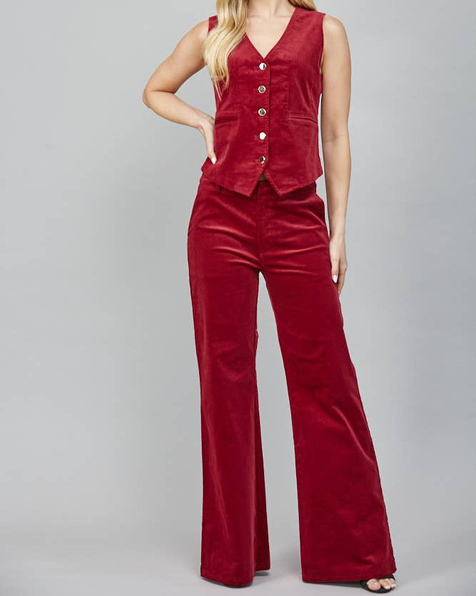 Step into style with the Coco Vest, a playful twist on classic tailoring. This vest shines with glossy gold buttons that catch the light and add just the right amount of glam. Crafted from soft, small wale stretch corduroy, it offers a sleek slim fit through the waist while the stretchy fabric keeps comfort front and center. Detailed with neat welt pockets, the vest balances sophistication with a fun, flirty vibe. Perfect for layering or standing solo, the Coco Vest turns any outfit into a polished statement. Get ready to elevate your look with a touch of charm and a lot of personality.